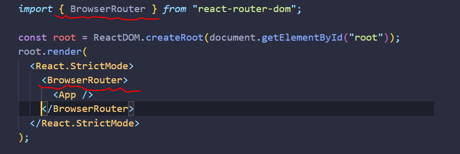 난 index.html에서 App.js를 BrowserRouter로 감싸줬으므로 BrowserRouter는 생략.