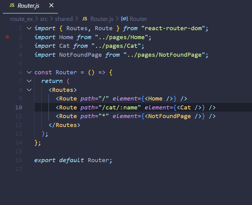 페이지를 만들어줬다면 이제 src 폴더 내에 shared라는 폴더를 하나 더 만들어 안에 Router.js를 넣어줄 거임.