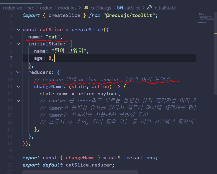 하지만 redux-toolkit은 그렇게 할 필요가 없다는 것.