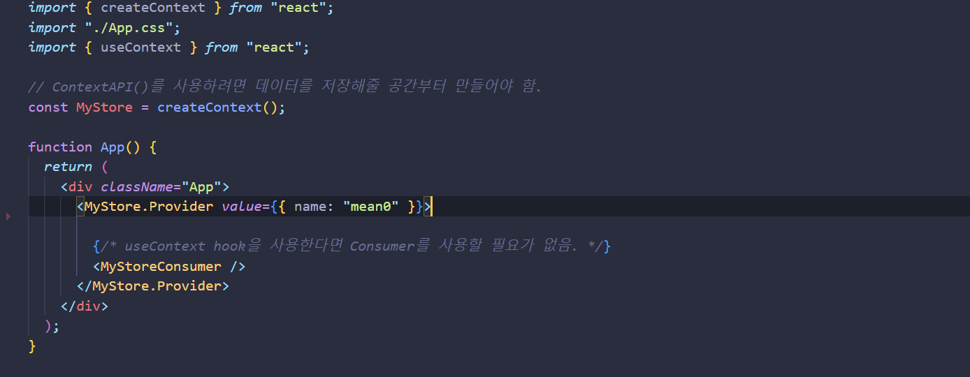 Consumer는 위처럼 사용하지만 useContext()를 쓰면 굳이 쓰지 않아도 괜찮아요.😊