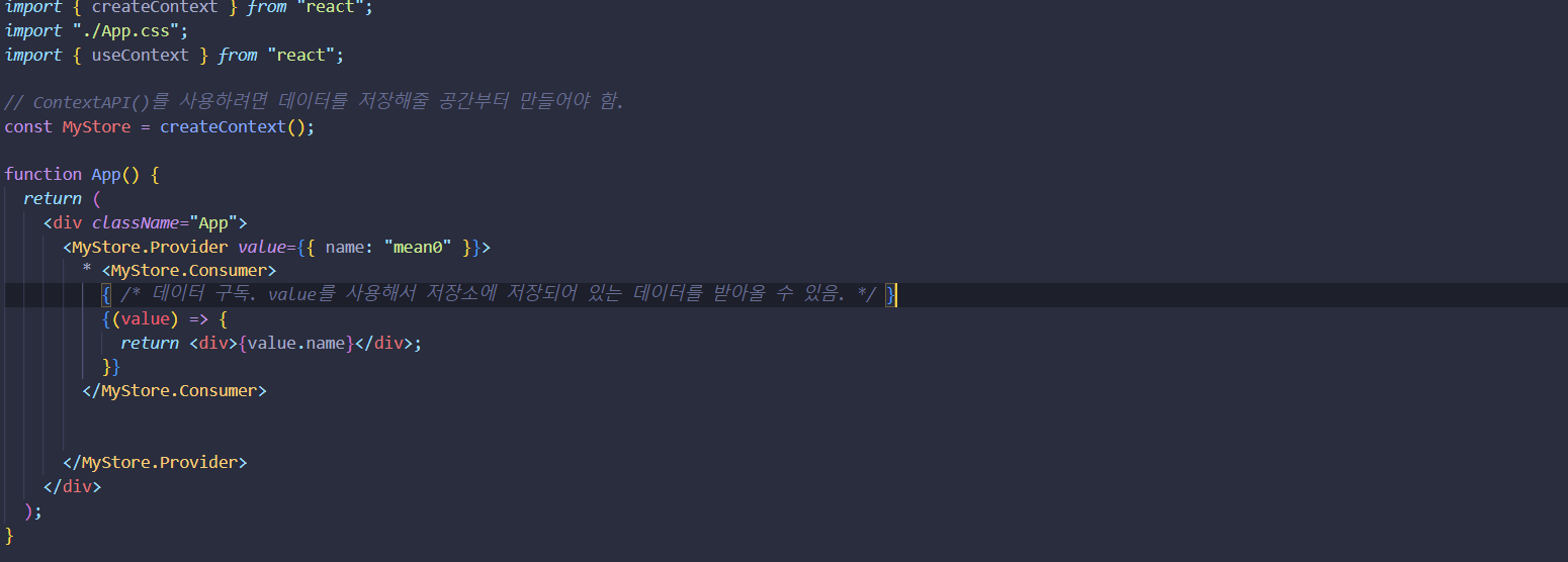 Provider로 감싸주기 이전에 데이터를 사용할 컴포넌트들을 Consumer로 감싸줍니다.