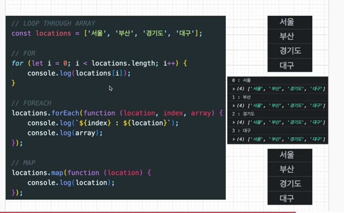 주로 배열을 컨트롤할 때, forEach, map을 많이 사용한다.