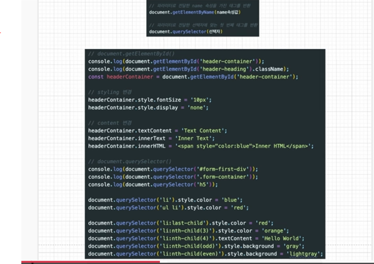 document 객체의 메소드들을 사용하면 다양한 방법으로 웹 페이지 내의 태그들에 접근할 수 있다.