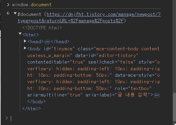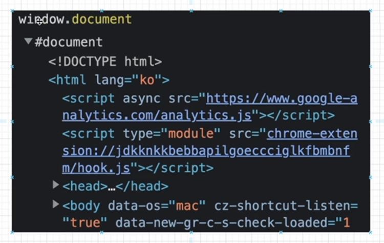 Window 객체가 브라우저 창이라고 하면document 객체는 브라우저 내에서 콘텐츠를 보여주는 웹 페이지 자체라고 할 수 있다.