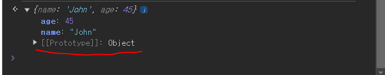 user 객체 변수를 콘솔로 찍어보면, [[Prototype]] : Object라는 것을 확인할 수 있다.