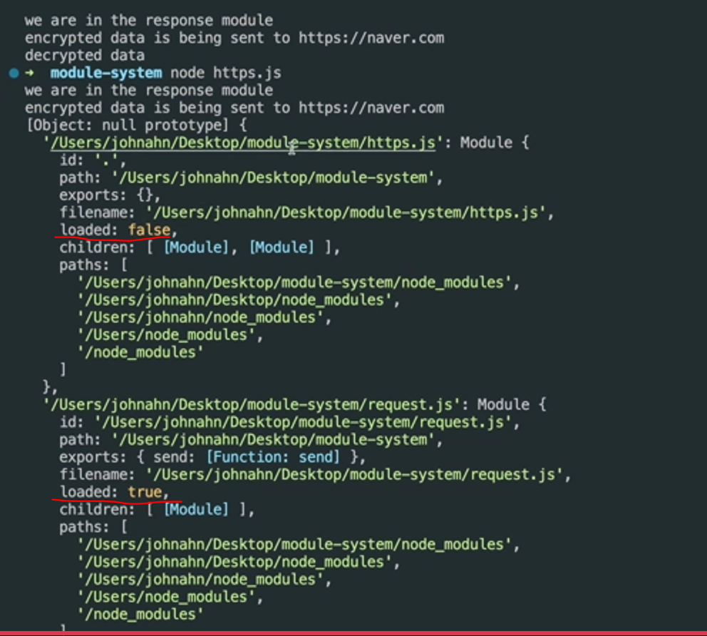 이미 한 번이라도 다른 곳에서 가져다 사용한 module들은 loaded : true라고 뜨게 된다.