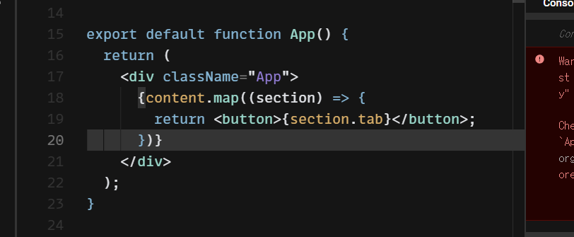 map을 돌린 다음, 안에 button을 생성해 object 안의 tab을 담아줌.
