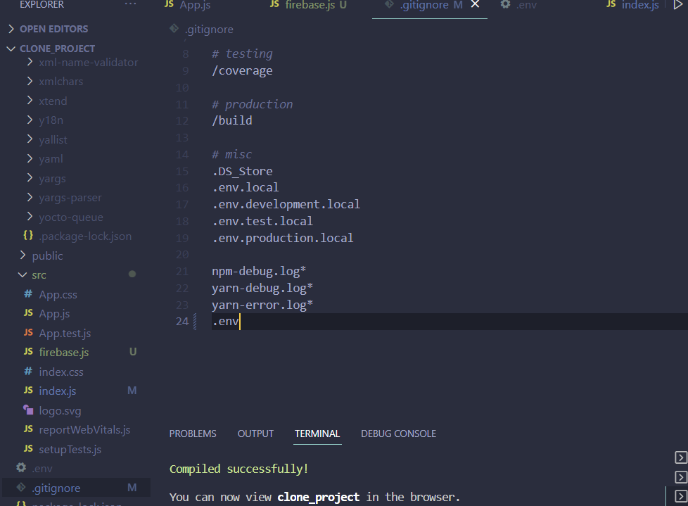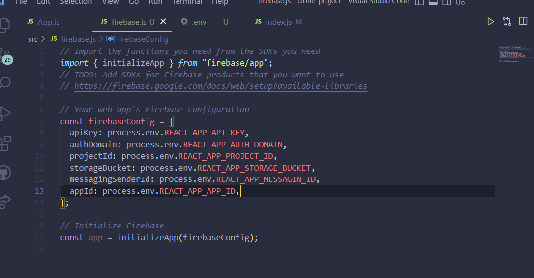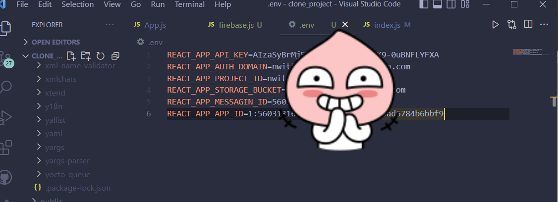 firebase.js 파일도 거기에 맞게 수정을 해줌.(process.env.REACT_APP_이름)