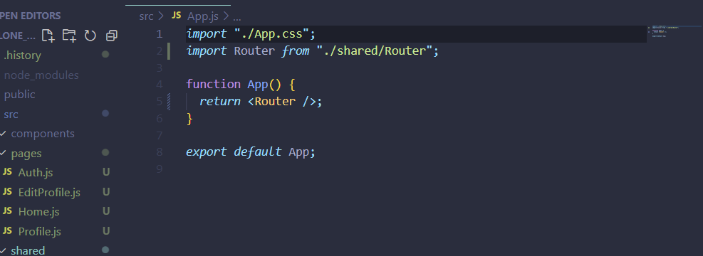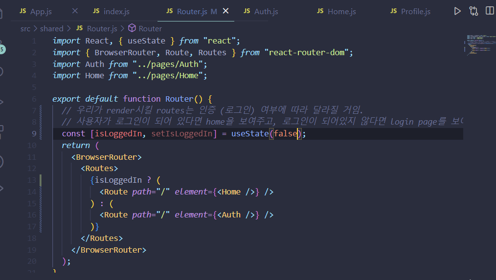 shared 내부에 Router.js를 담아줌.