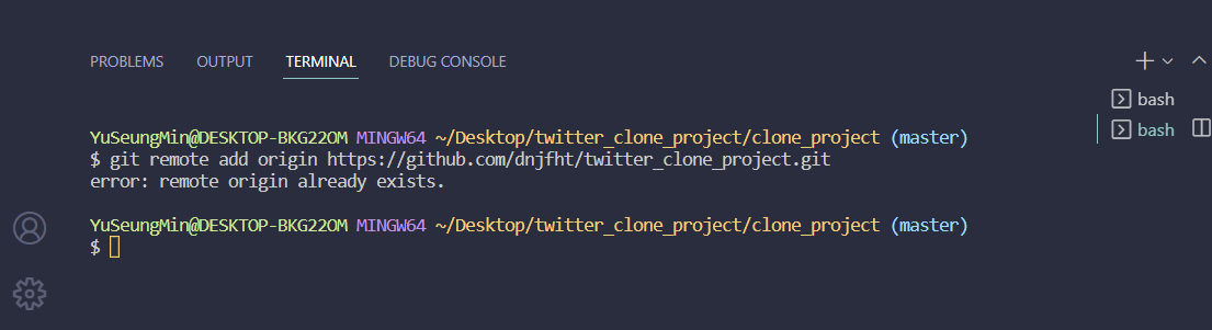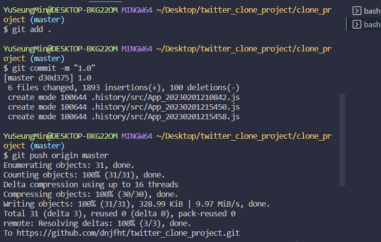 ( ex. git remote add origin https://github.com/dnjfht/twitter_clone_project.git )