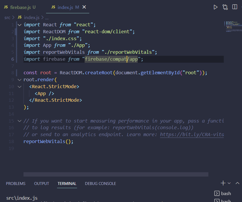 index.js 파일에도 import firebase from "firebase/compat/app" 추가하여 import 해줌