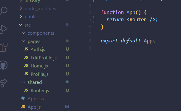 pages 내부에 Auth, EditProfile, Home, Profile 등 필요한 페이지를 추가해줌.
